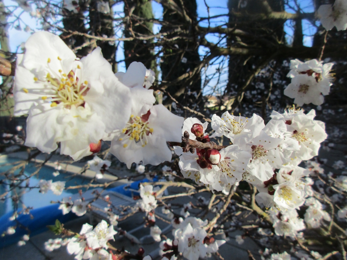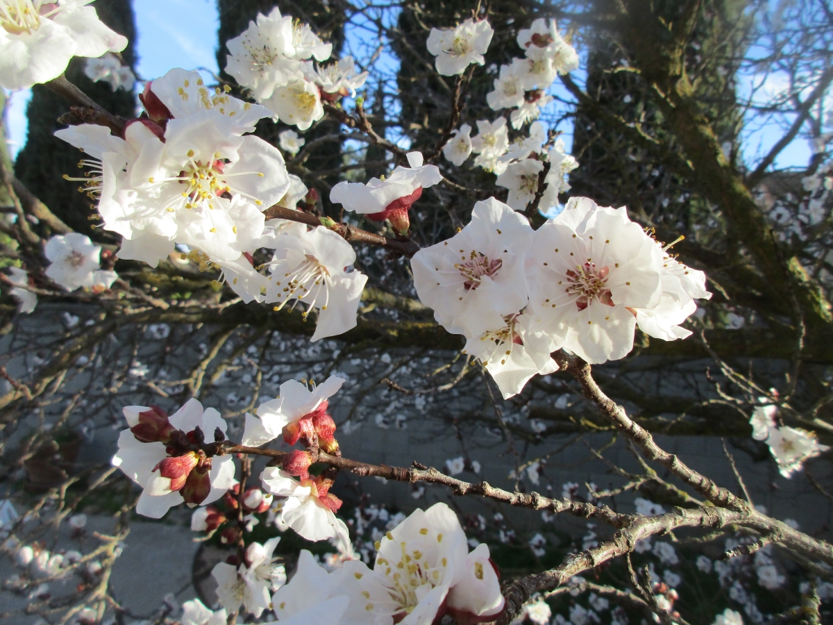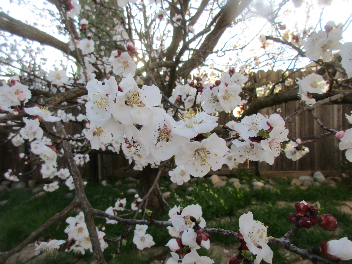 Looks like a good crop of appricots (if the rain/wind doesn't beat these blossoms up)...