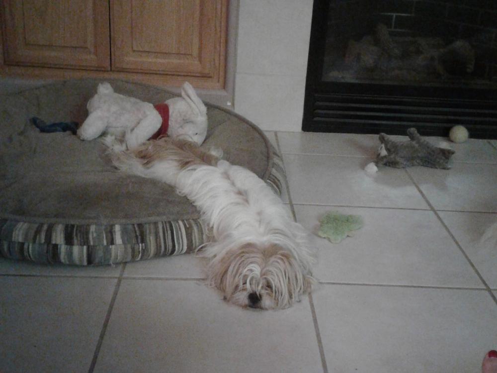 ... meanwhile... Lulu naps while Haley, Willow, and Cindy get wet...