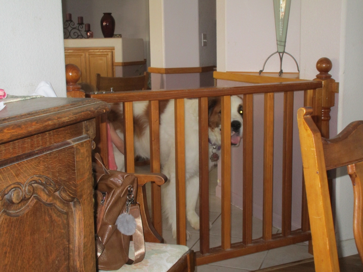 ... Willow, you left the gate open, put Penny back in the other room and close the gate...