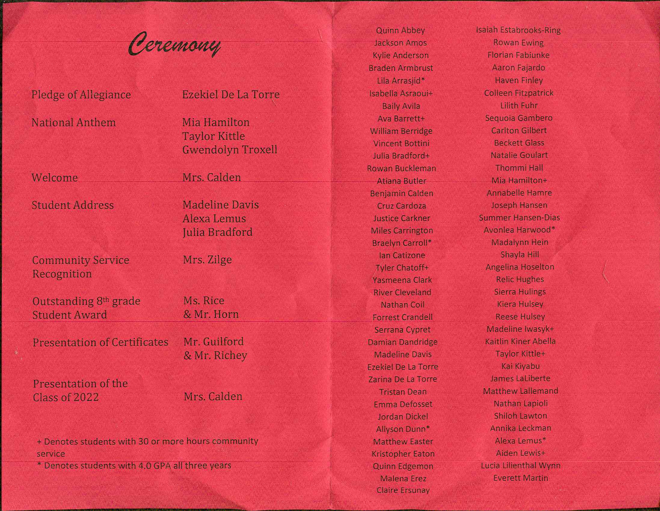 ... students with 30 or more hours of community service are recognized...