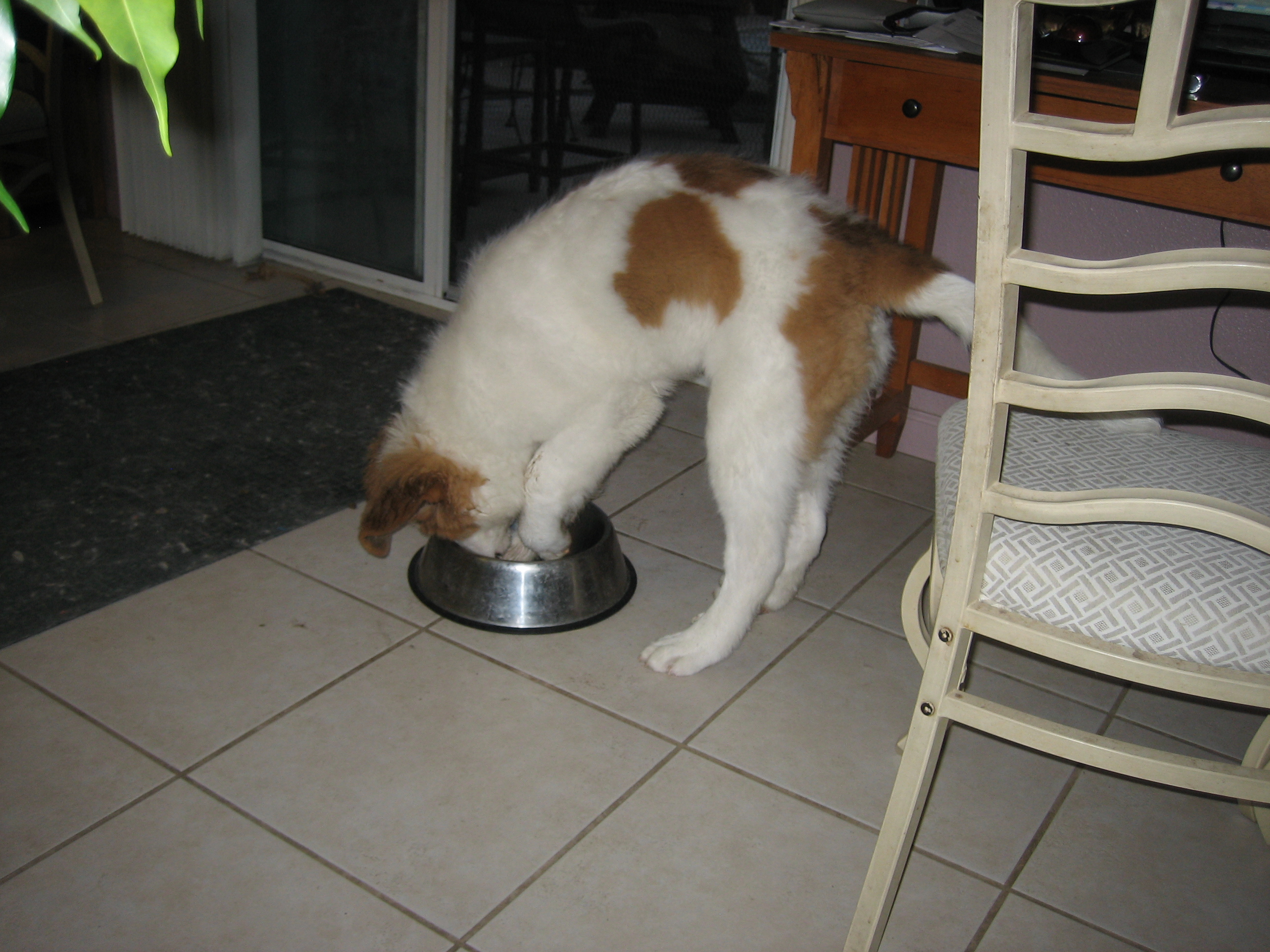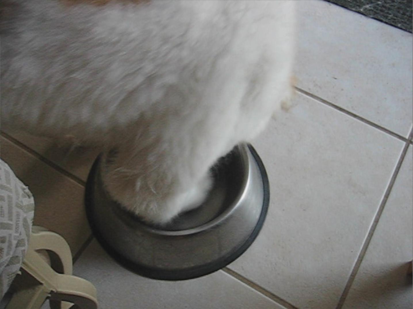 28APR13: Penny has an strange and curious habit... when her bowl gets empty... she digs in it... put food in and she goes away... just doesn't want it empty...