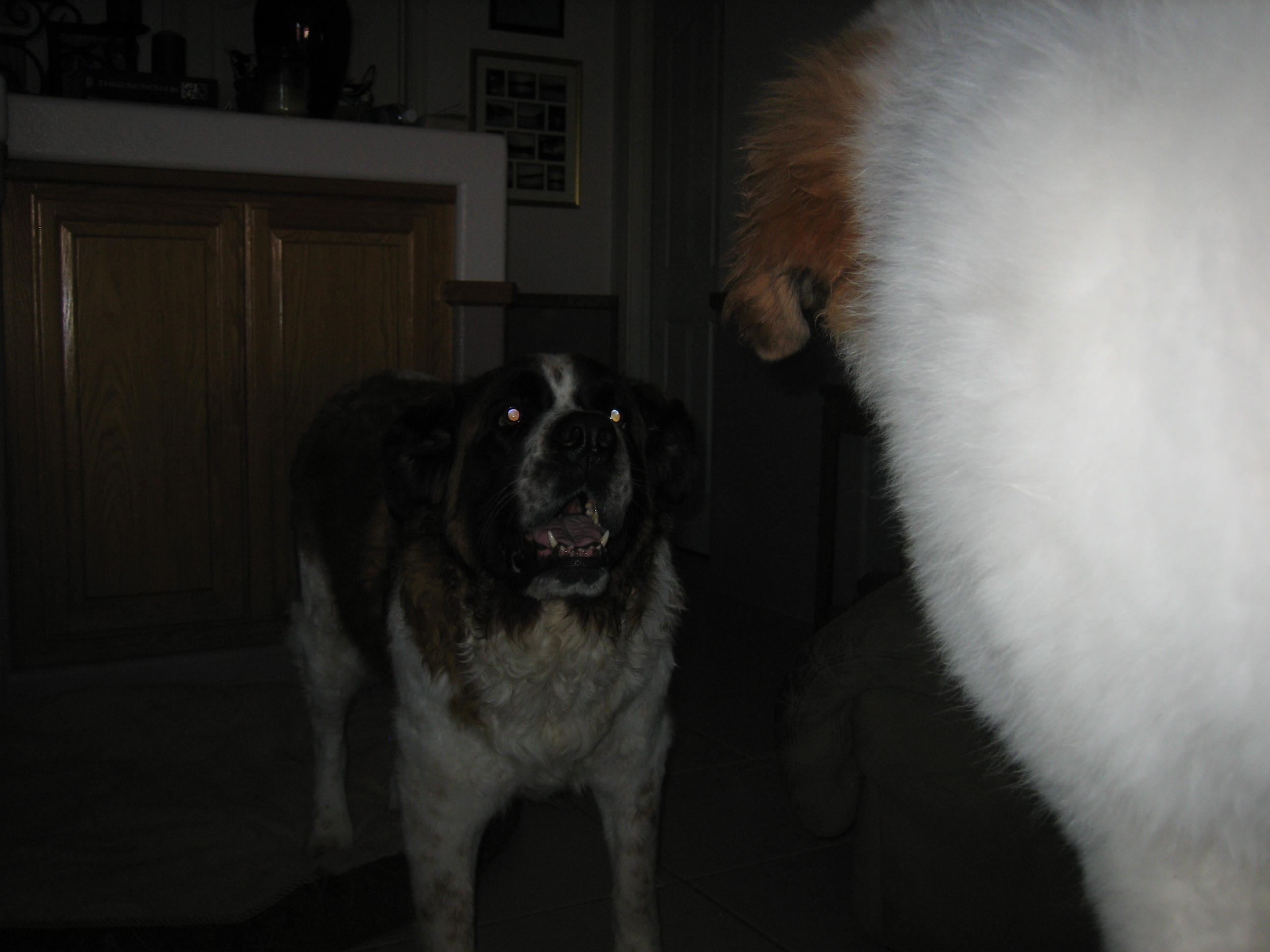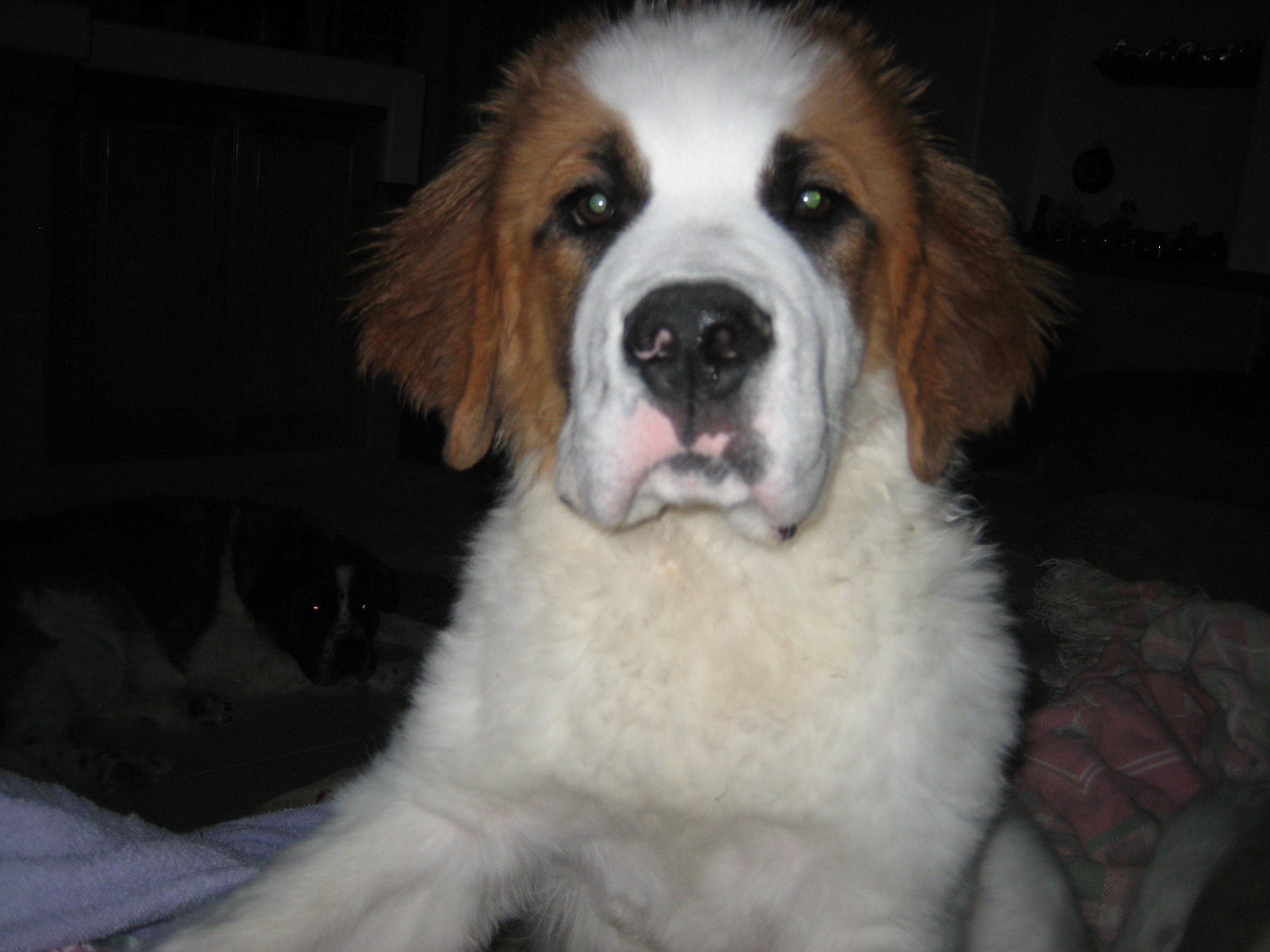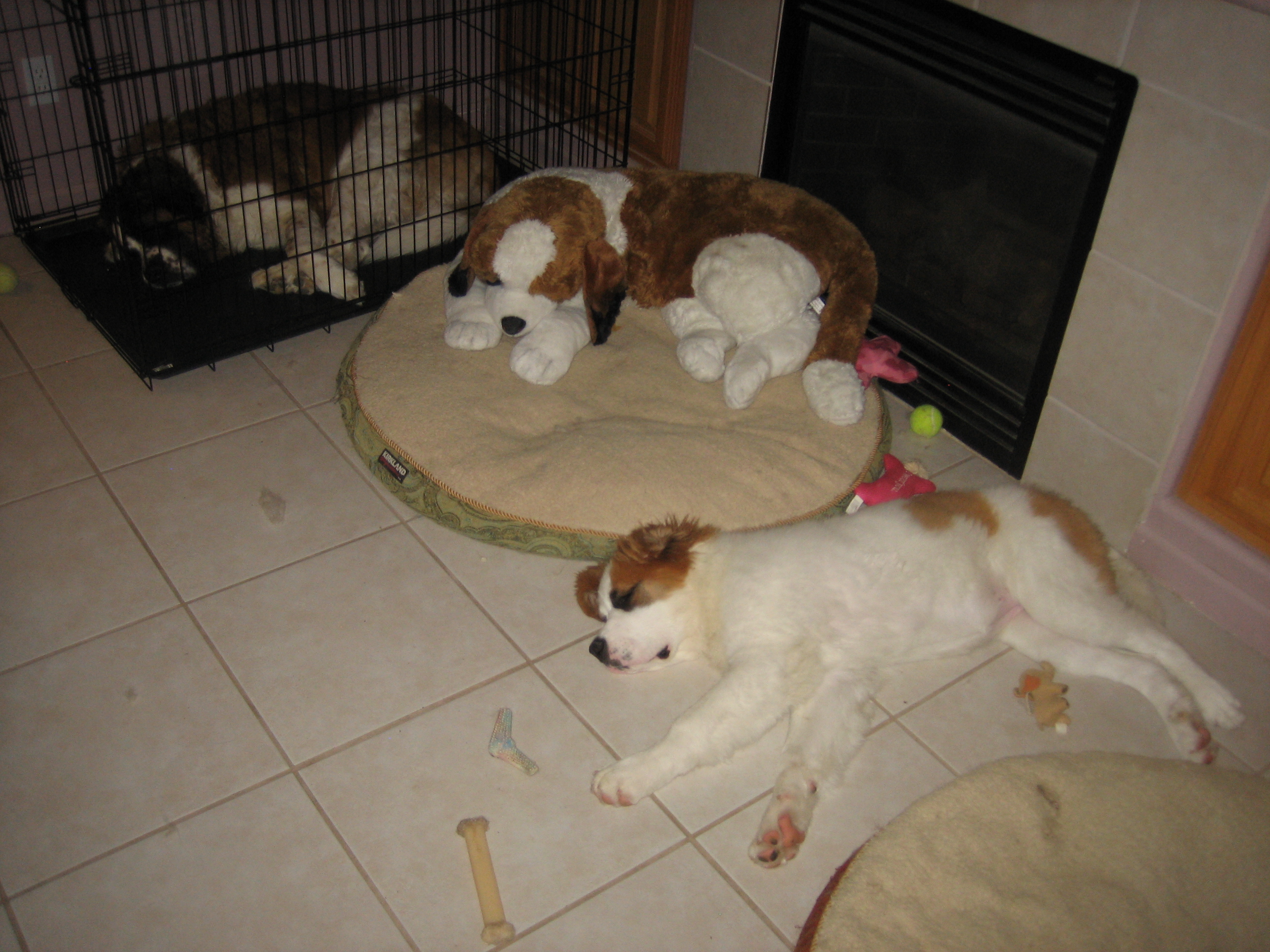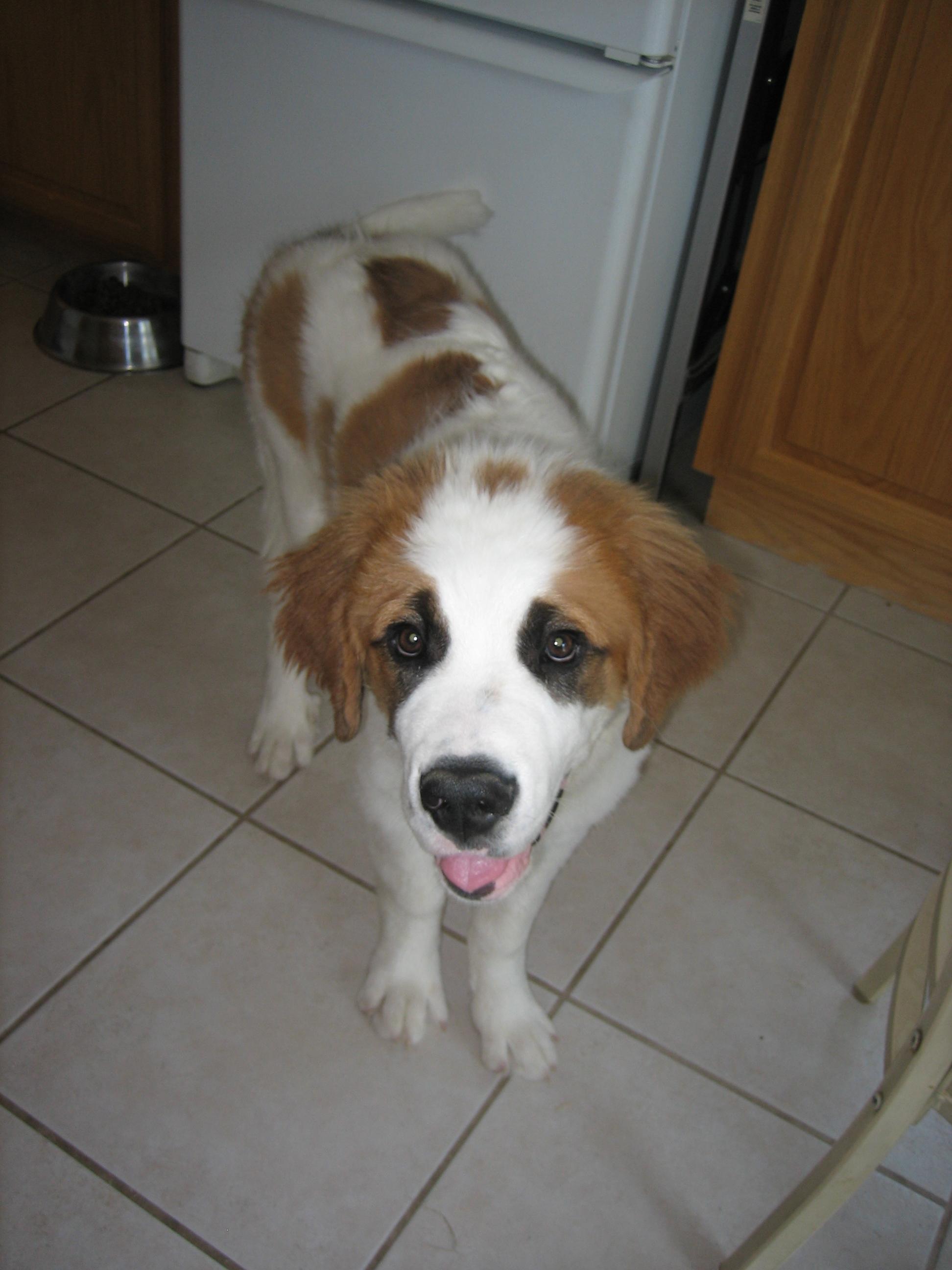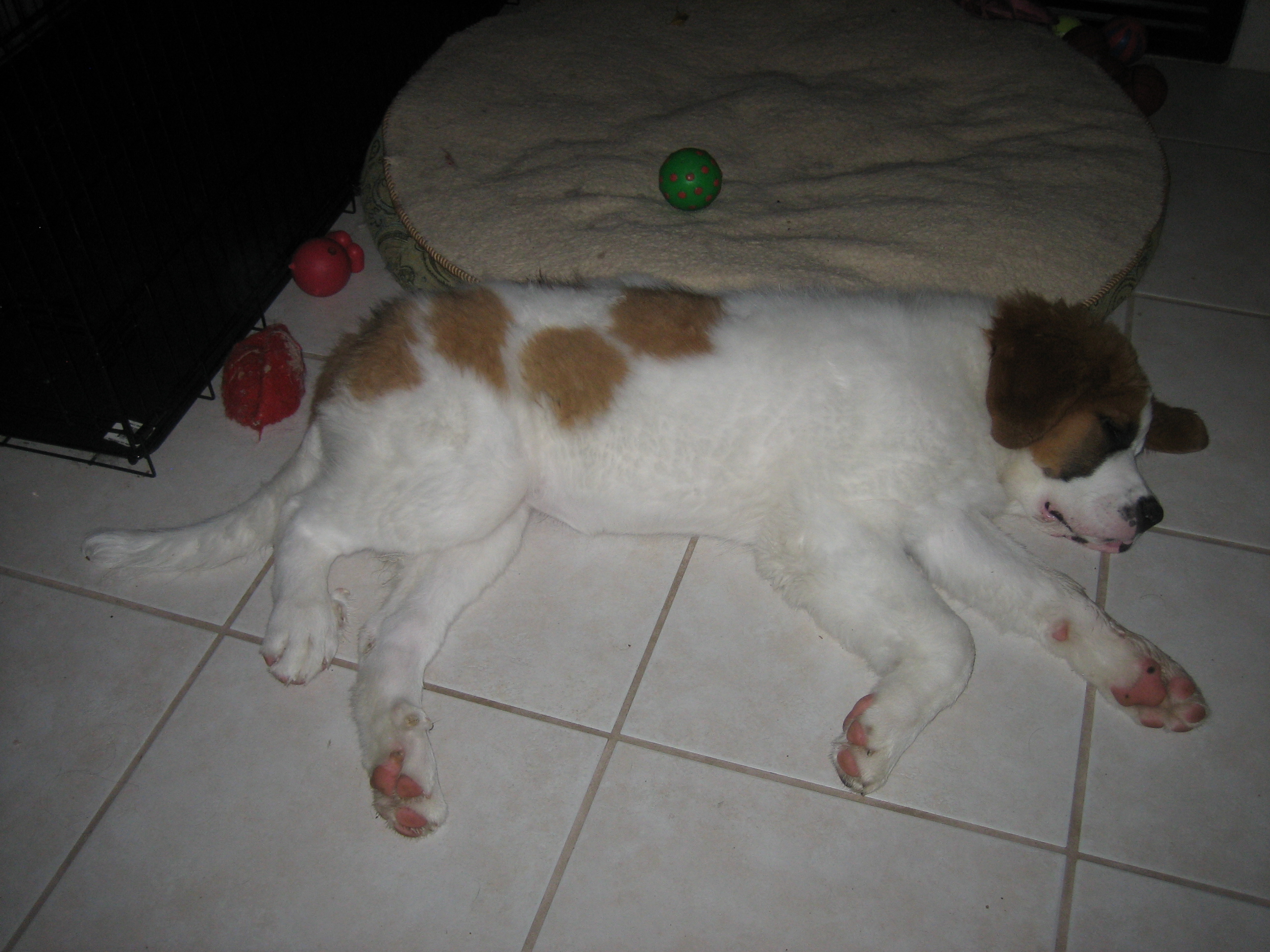 12APR13... to the vet... 44.4 pounds, shots, treats... 14MAR13: 6 toes on the rear...