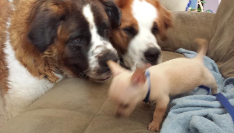 08AUG15/Saturday/4:00 PM... PETSMART Penny is "stimulus dog" for the dogs that are to be tested...