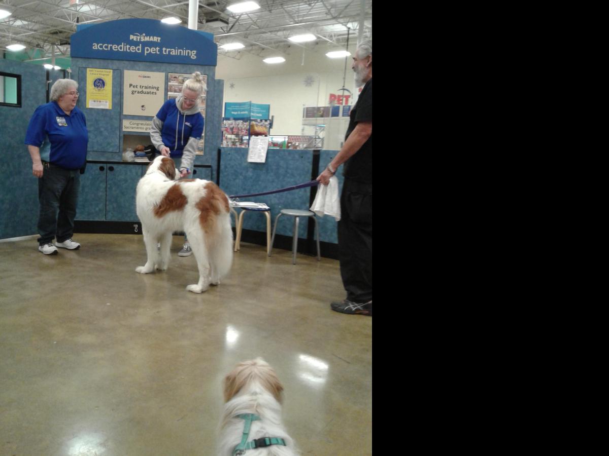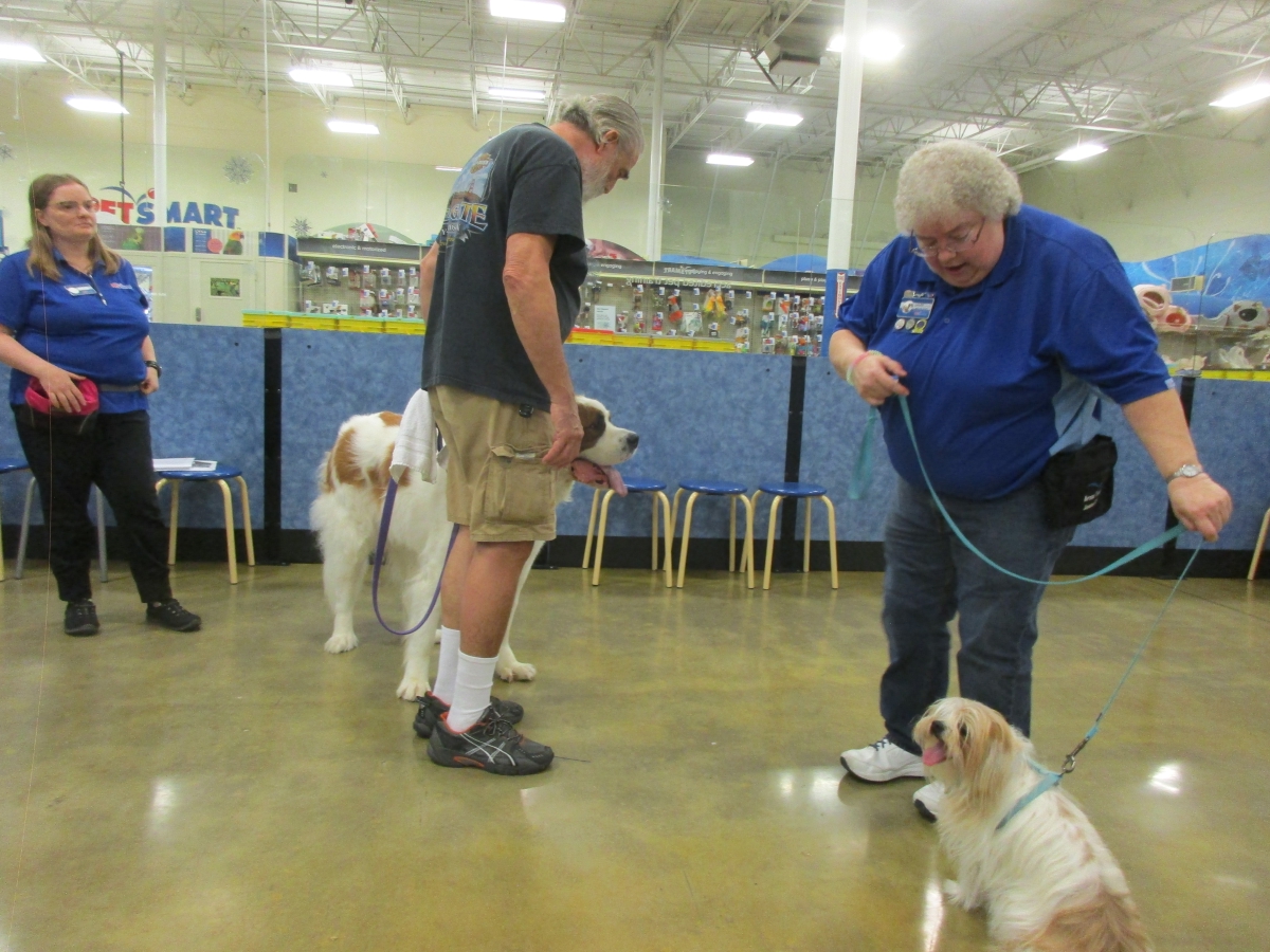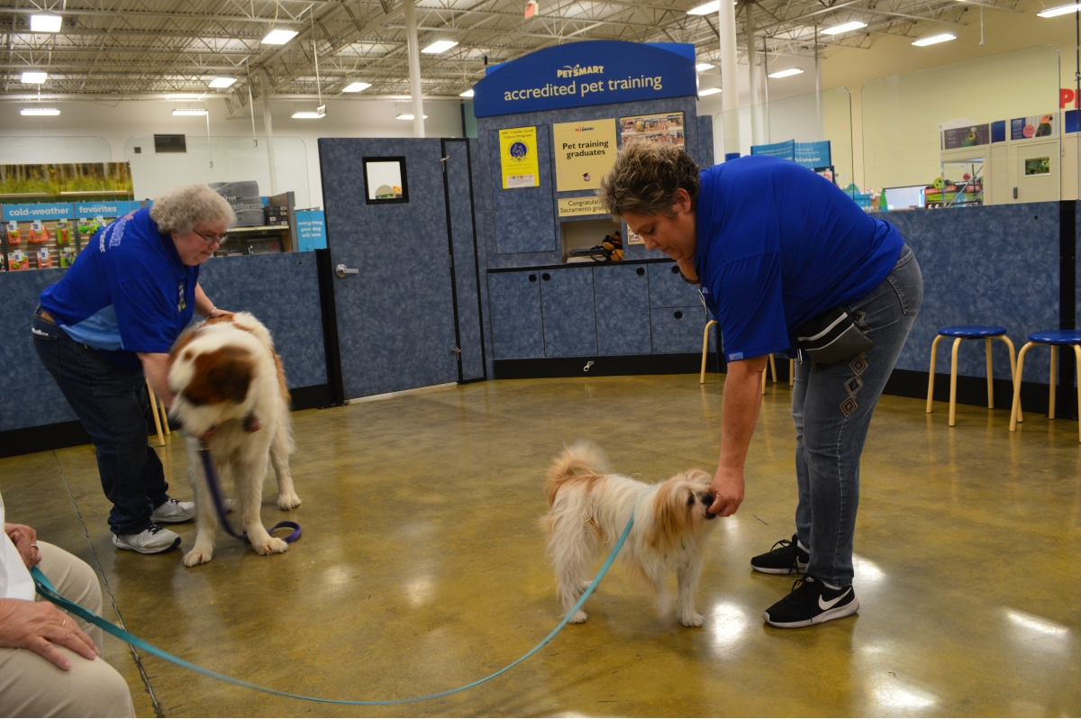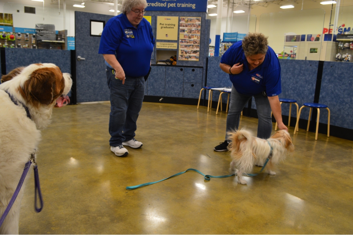 Penny and Lucy help Jamie's training of PetsMarts' Walnut Creek/Pitsburg new dog trainer, Elizabeth Coleman...