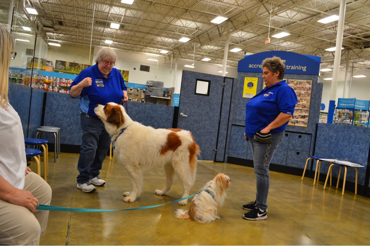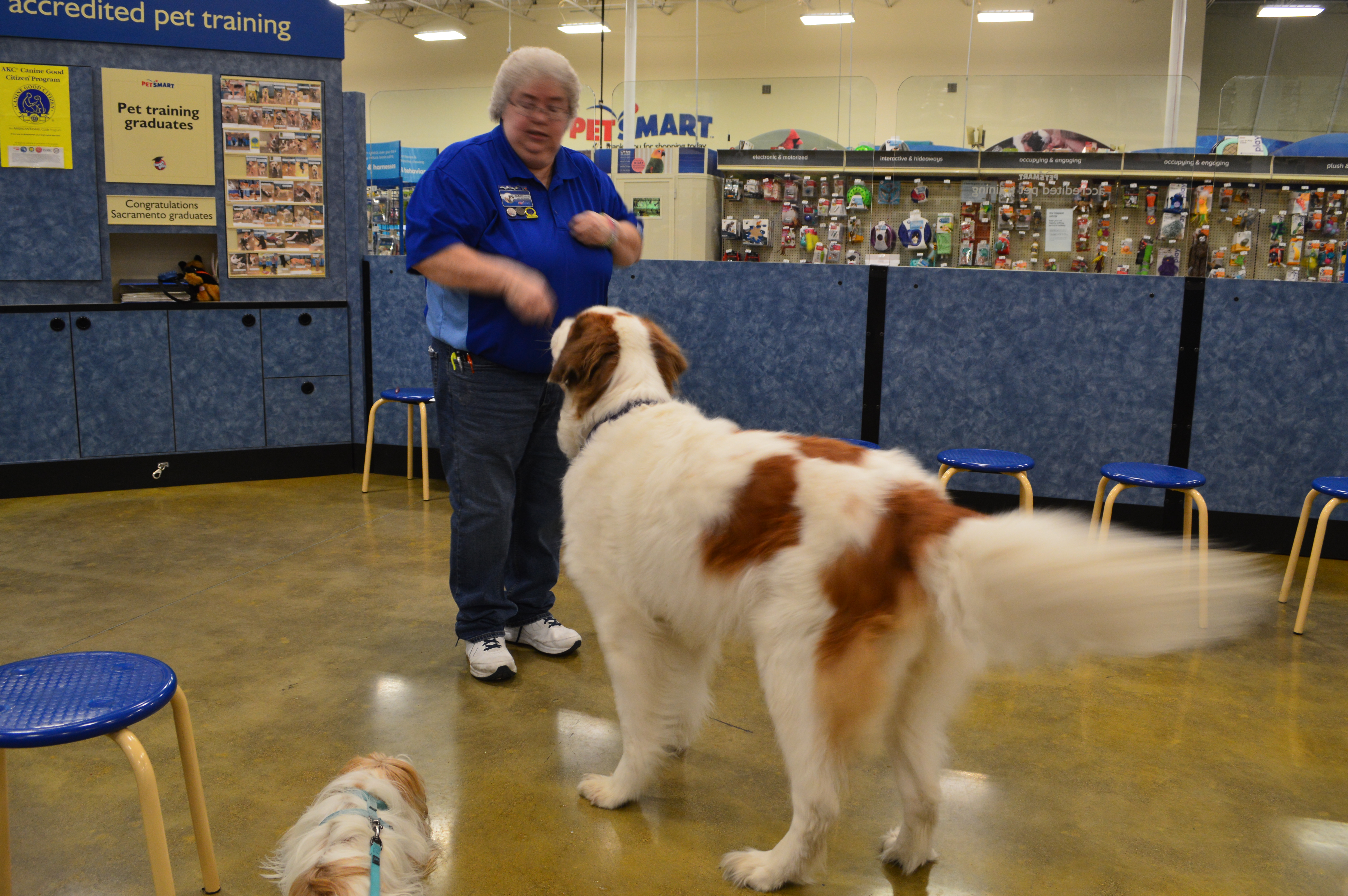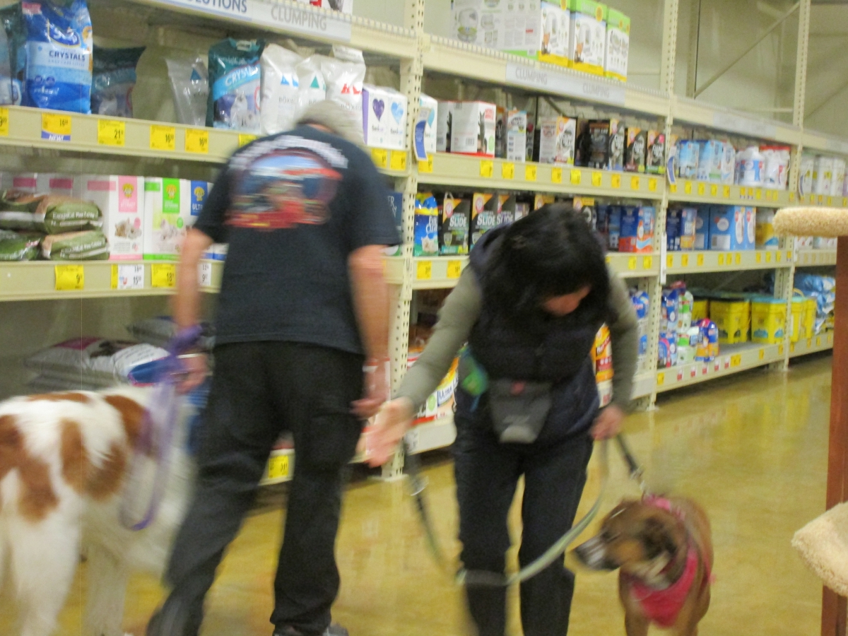 Penny and Lucy help Jamie's training of PetsMarts' Walnut Creek/Pitsburg new dog trainer, Elizabeth Coleman...
