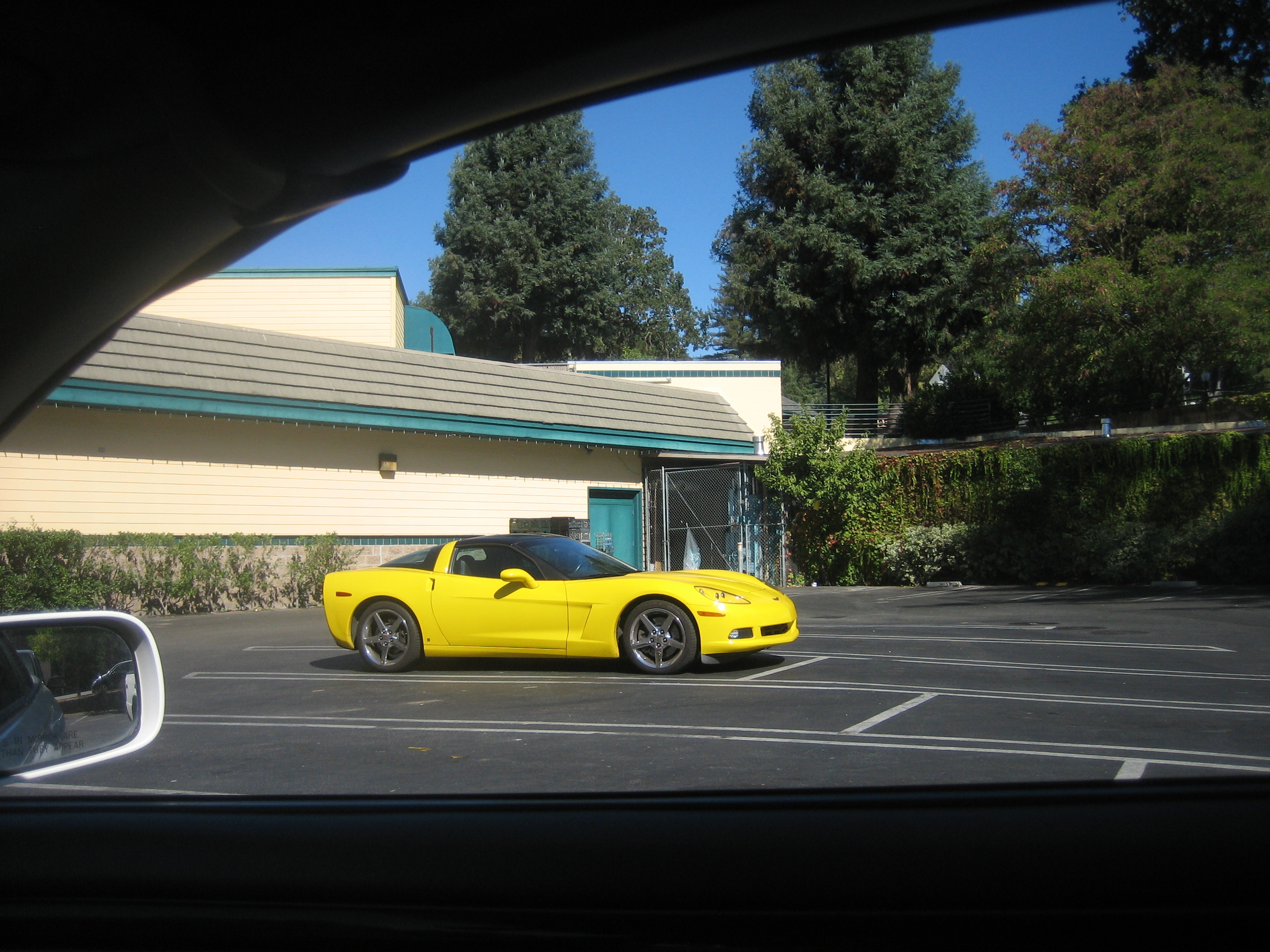 stop at grocery store in Ben Lomand... while I get some munchies for the beach... daddy and Izzy wait in car... and take pictures of a vet sitting there... he doesnt like yellow but likes the way the details are obvious with that color...
