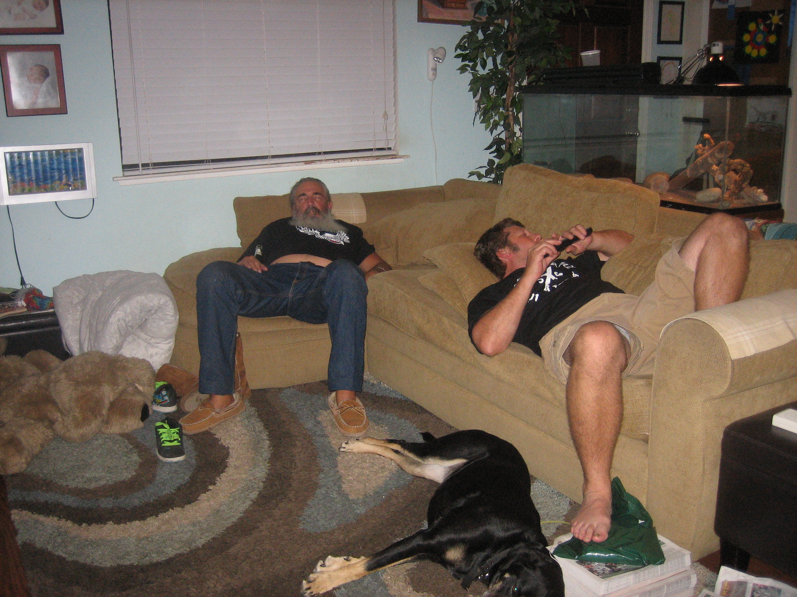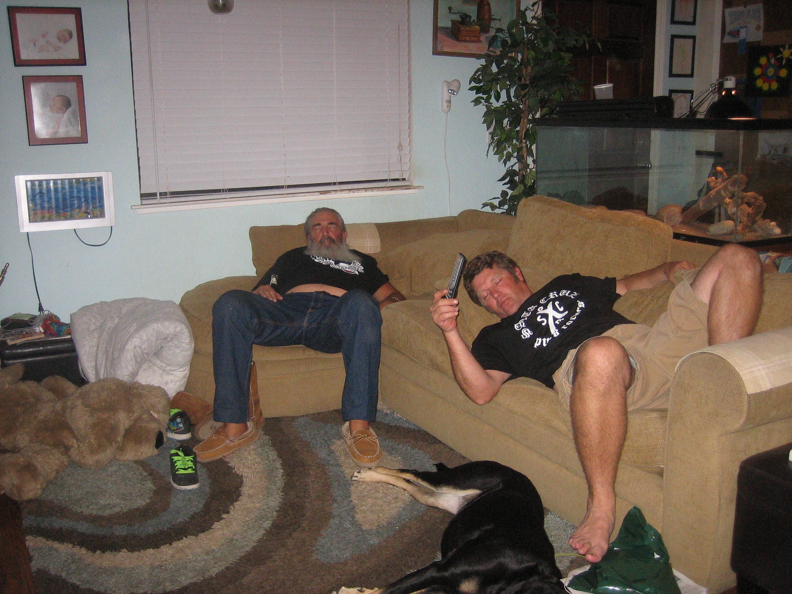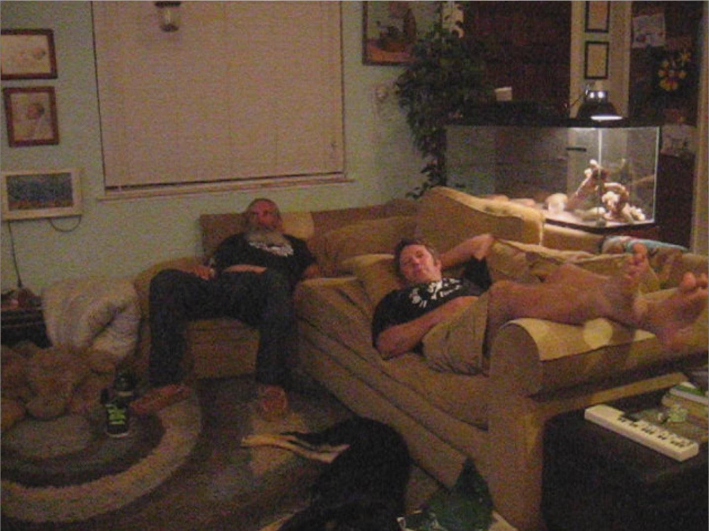 party animal (up till 4am the night before)... crashed...