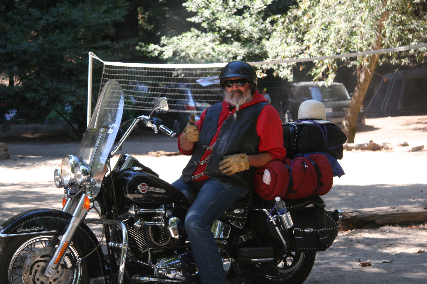 same popup tent trailer behind him...
