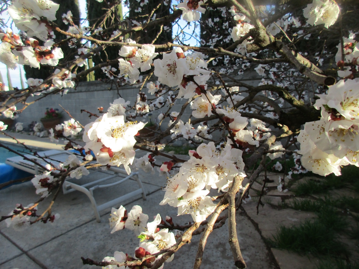 Looks like a good crop of appricots (if the rain/wind doesn't beat these blossoms up)...