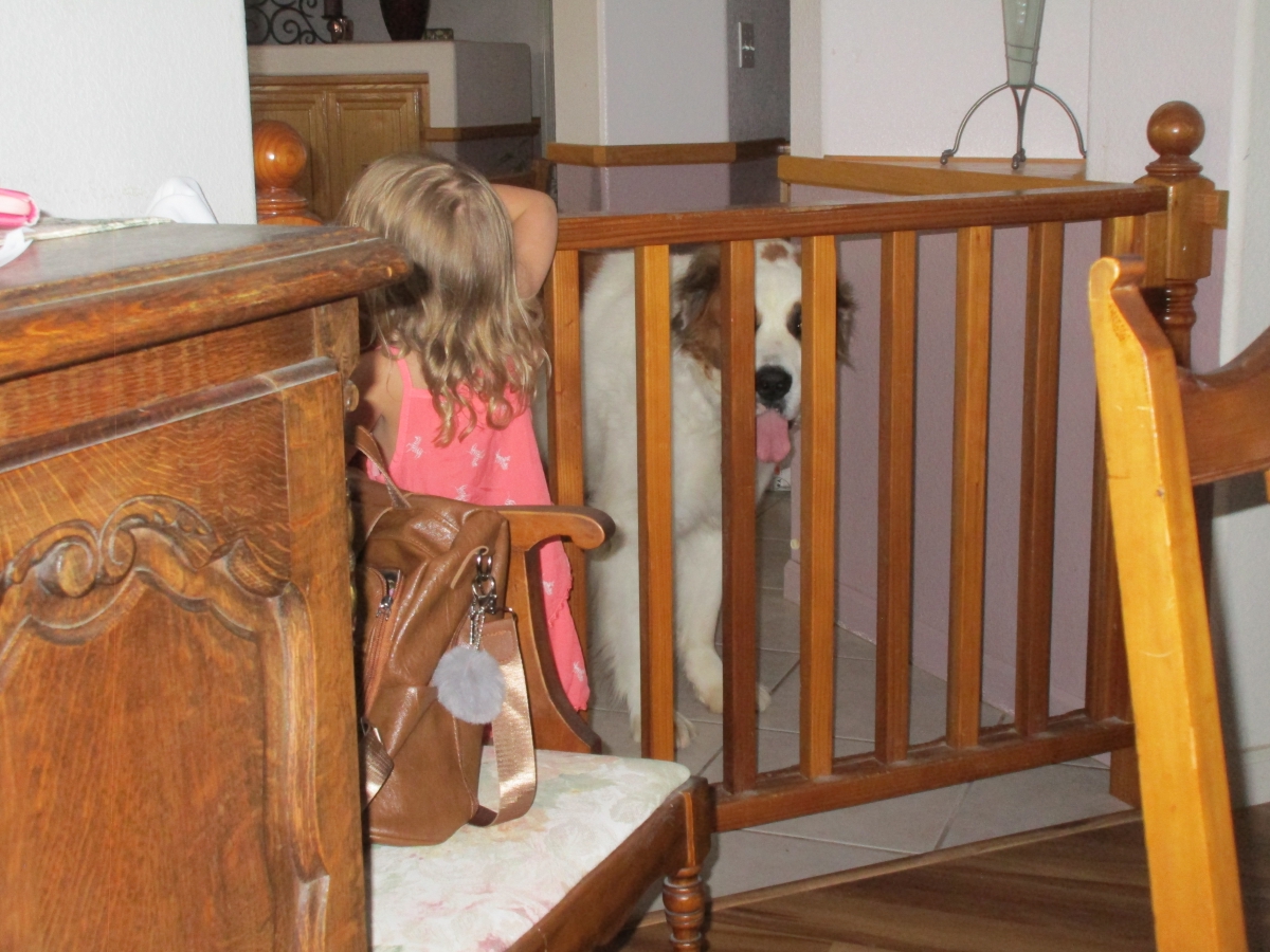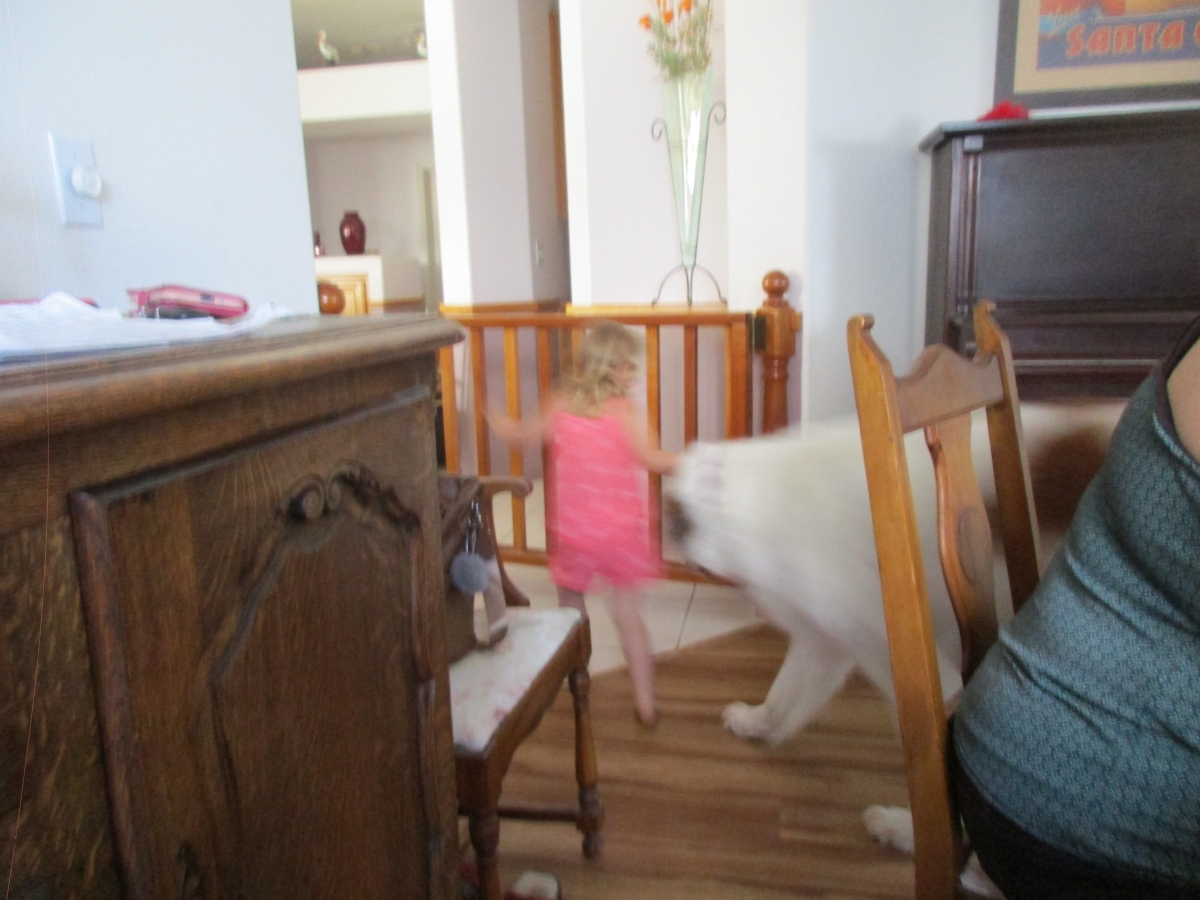 ... Willow, you left the gate open, put Penny back in the other room and close the gate...