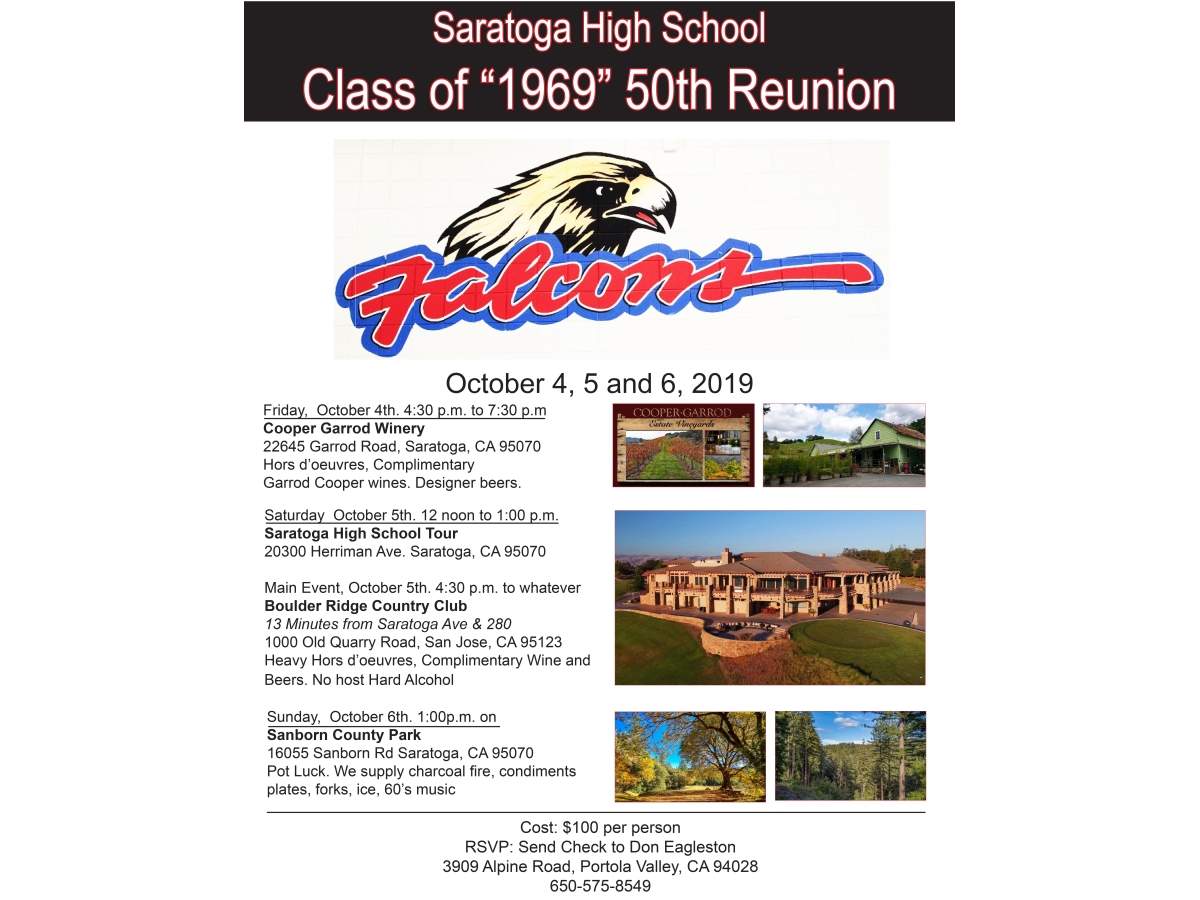 back to Saratoga High School Class of "1969" 50th Reunion event photos . . .