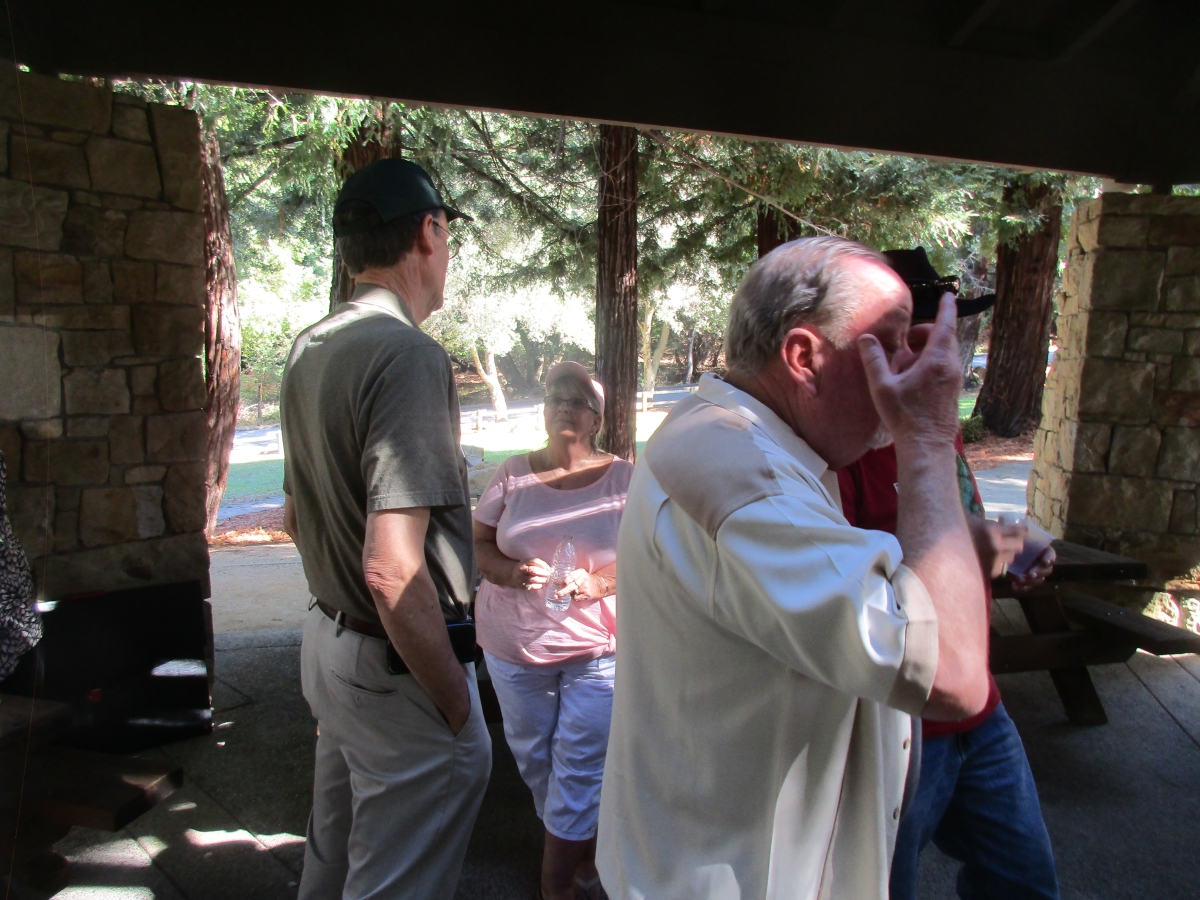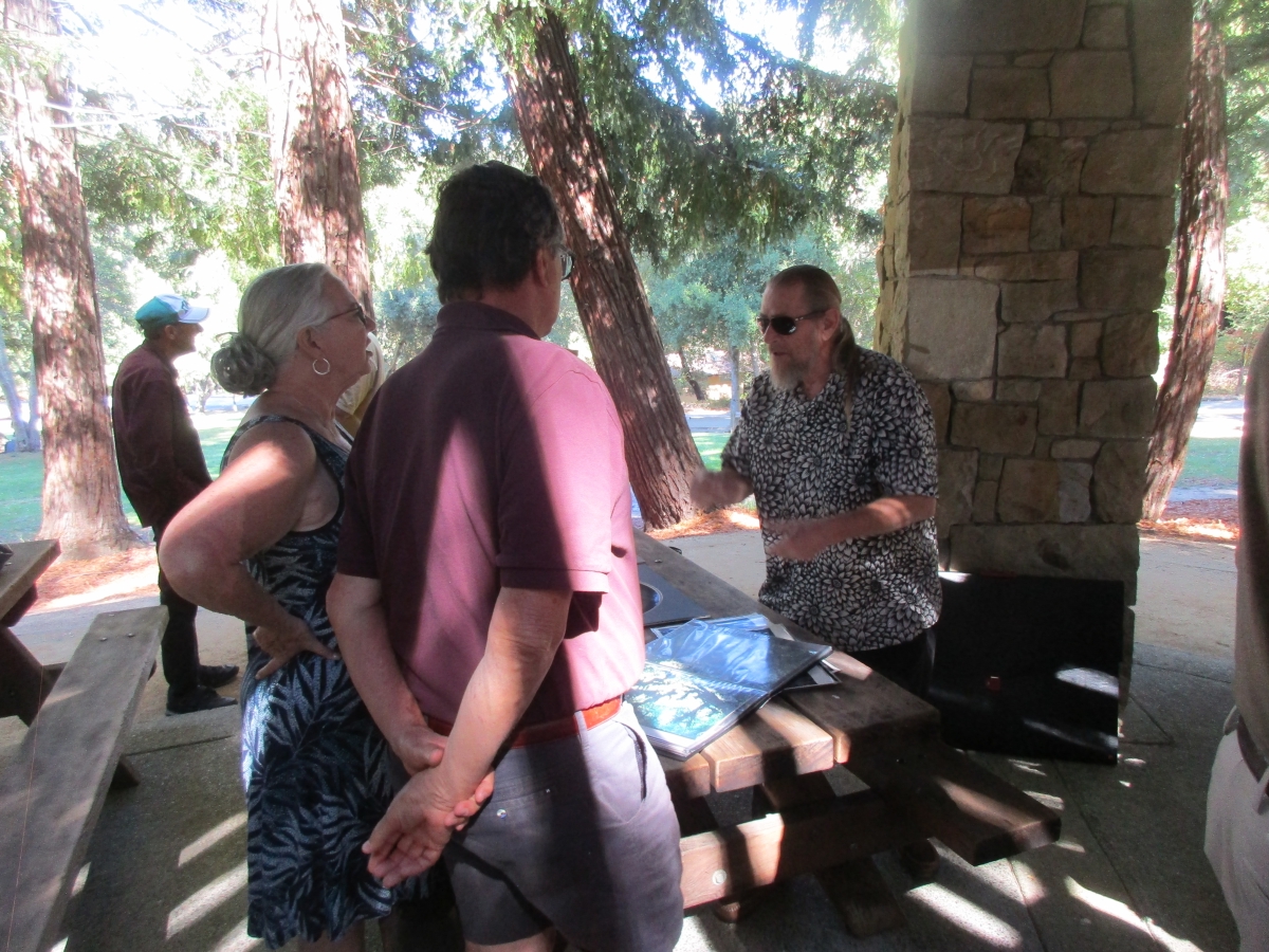 12 noon began an outdoor gathering pot luck and BBQ at the beautiful redwood
