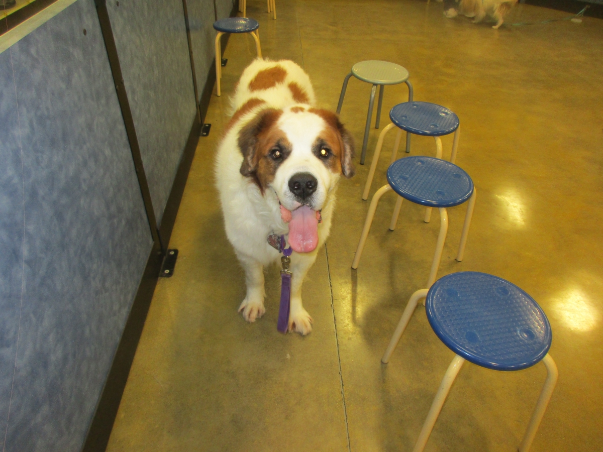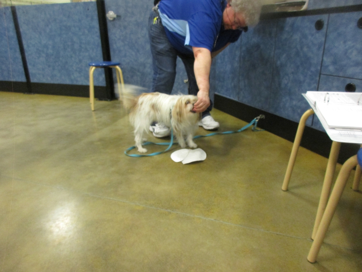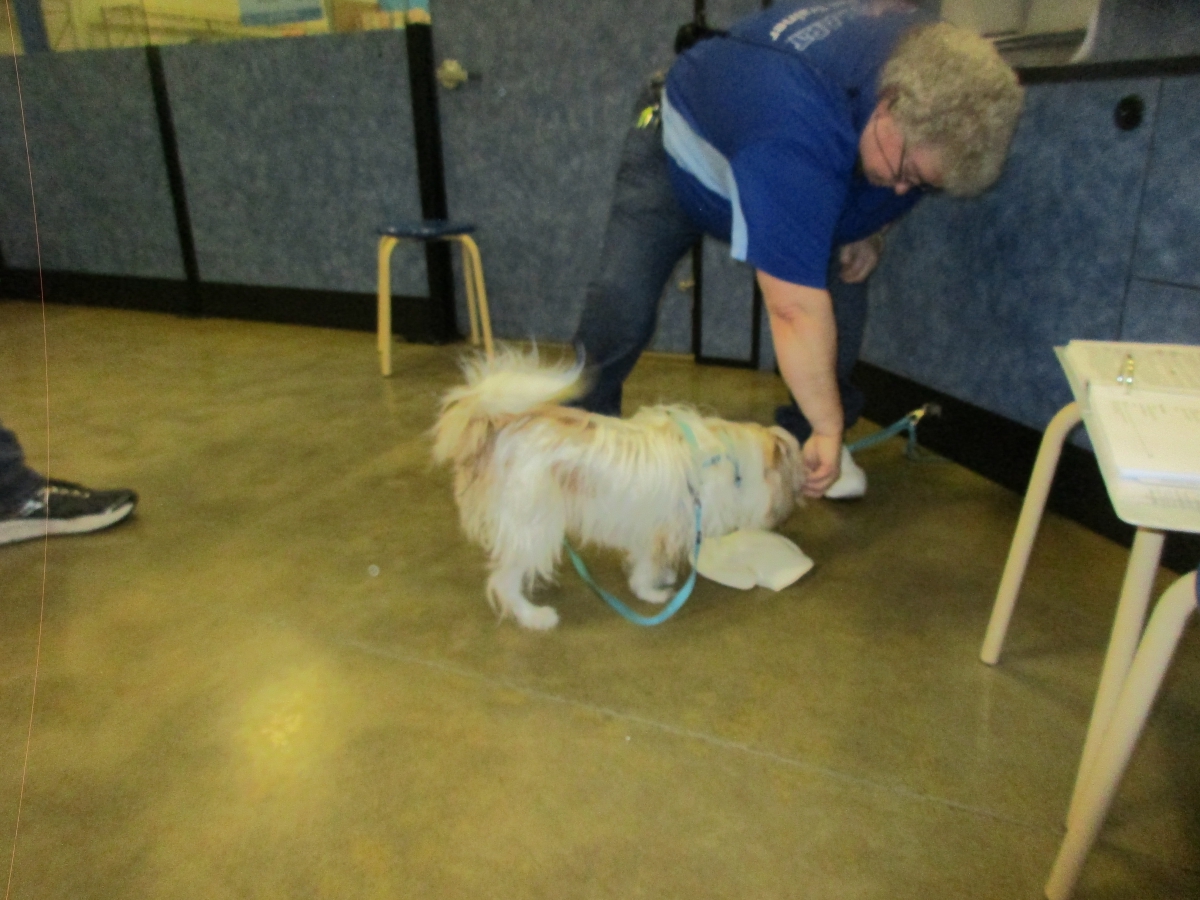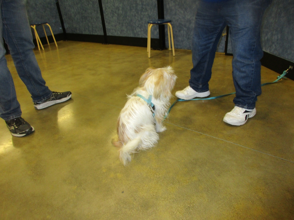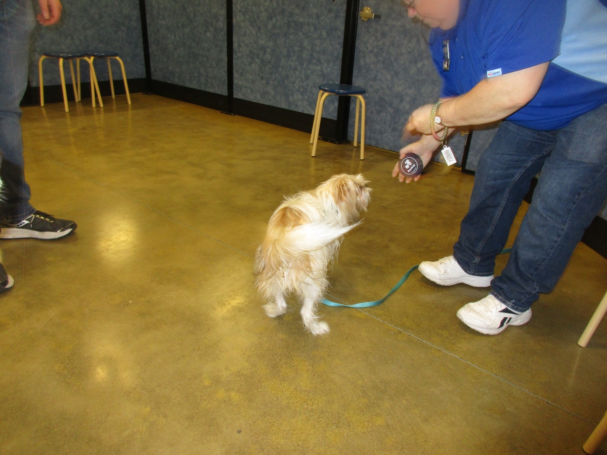 Penny helps Jamie's training of Conner, a new trainer from the Elk Grove Petsmart, in the proper way to train a Click-&-Trick class of pet owners and their dogs...