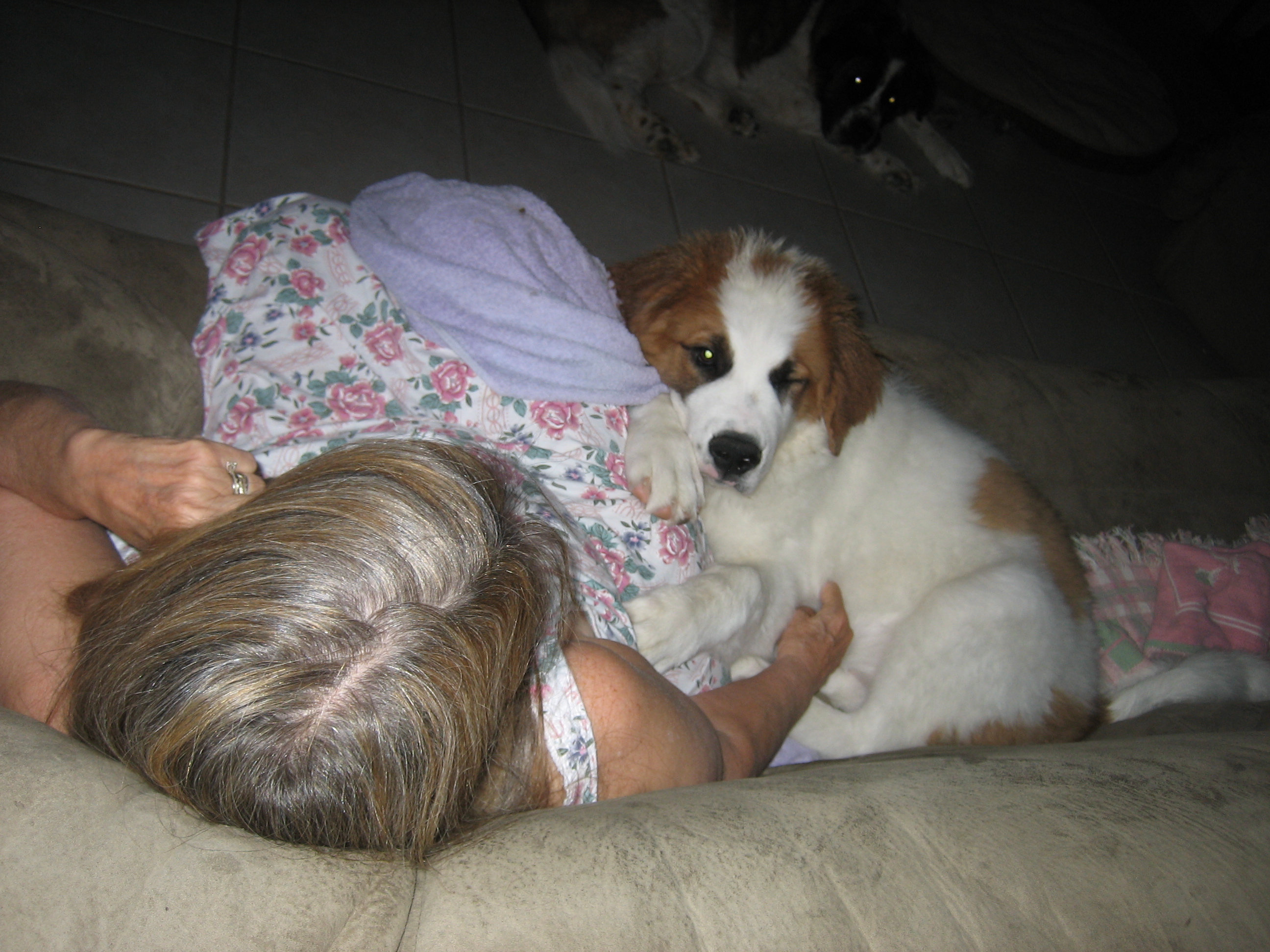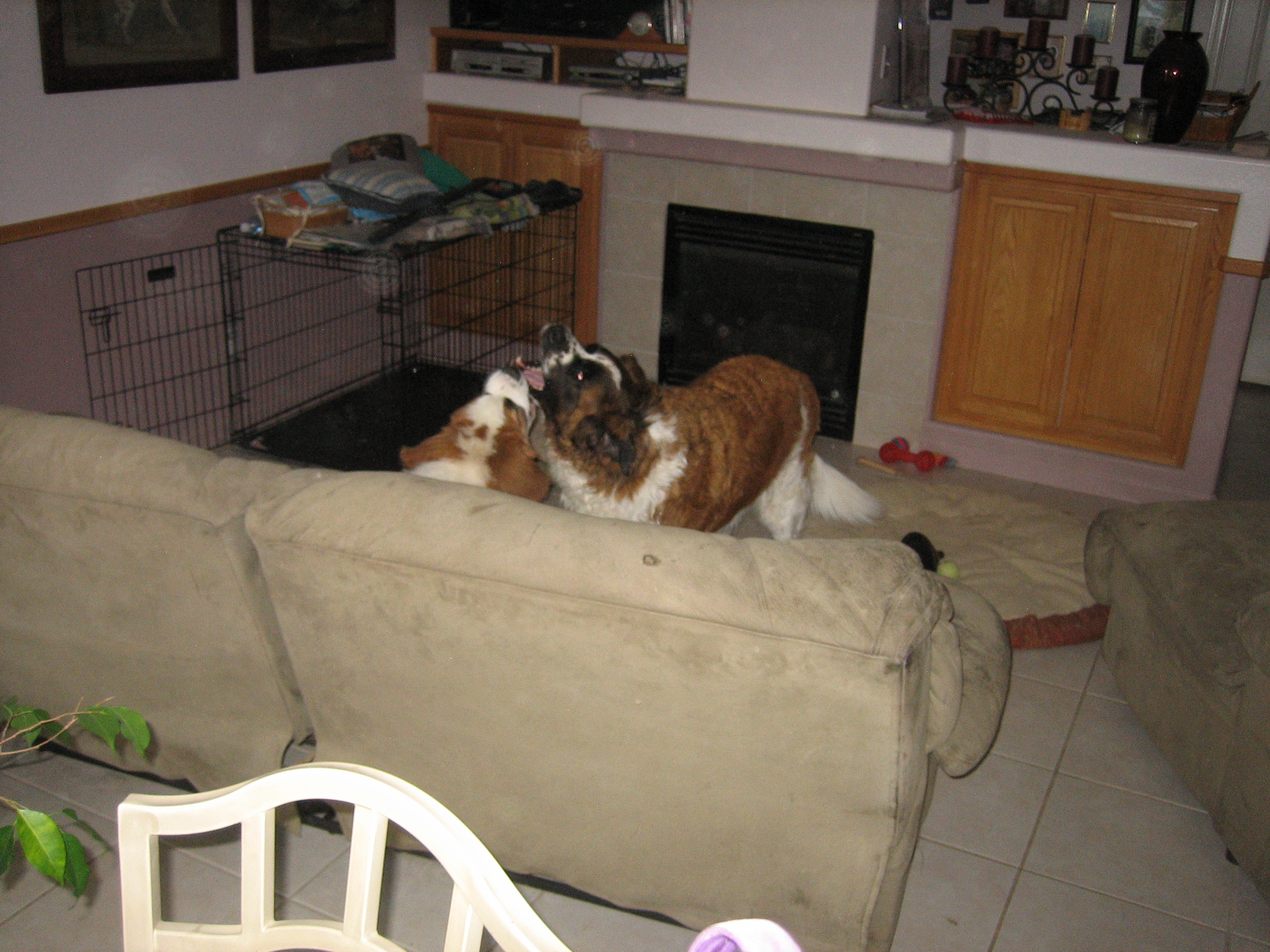 23APR13: Penny snuggling with mama... ... Penny peeking over the couch at daddy... ... Penny digging at the bottom of her food bowl... must have more... NOW!!!