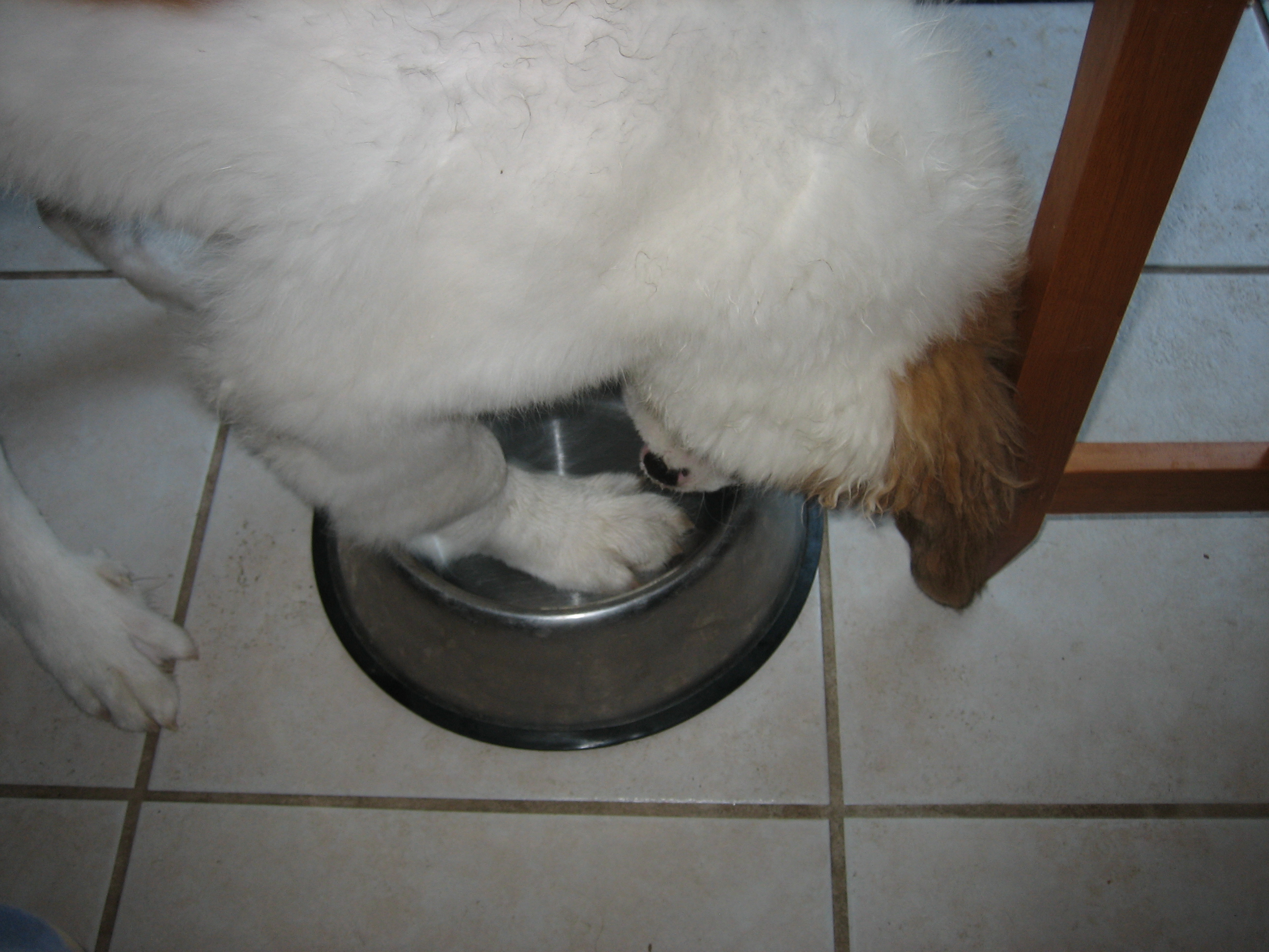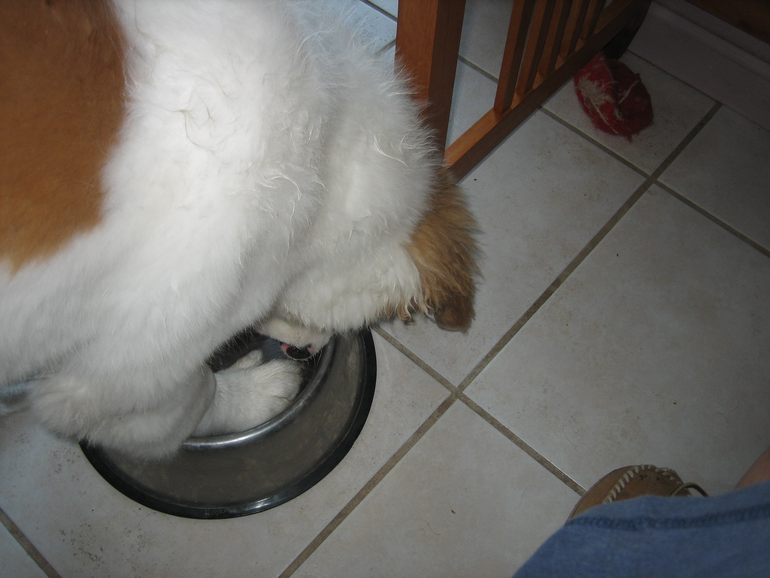 28APR13: Penny has an strange and curious habit... when her bowl gets empty... she digs in it... put food in and she goes away... just doesn't want it empty...
