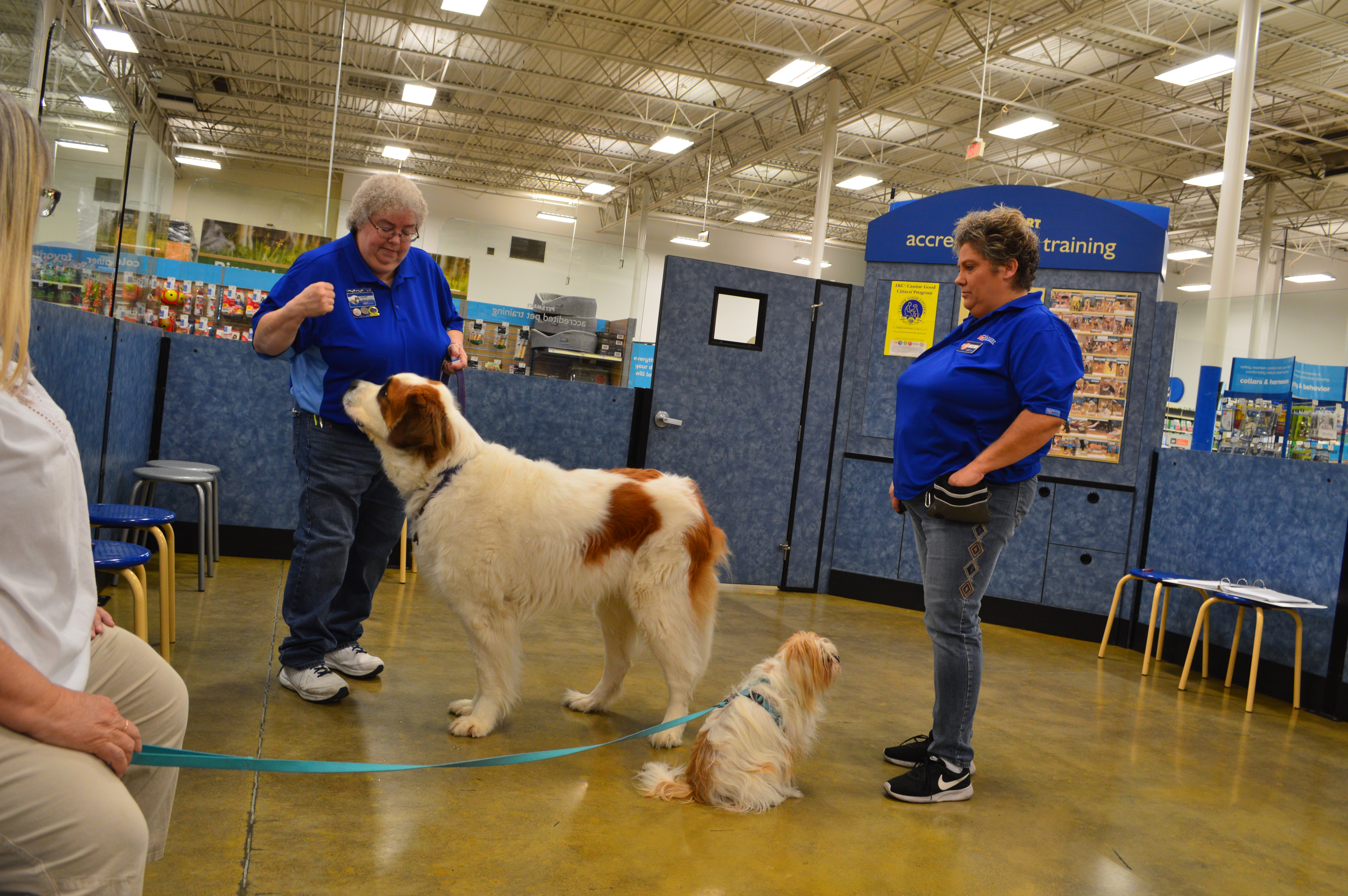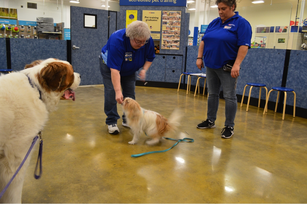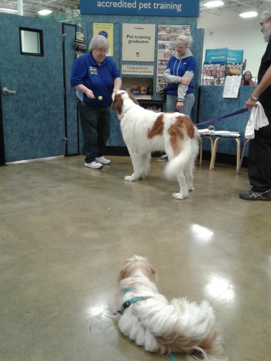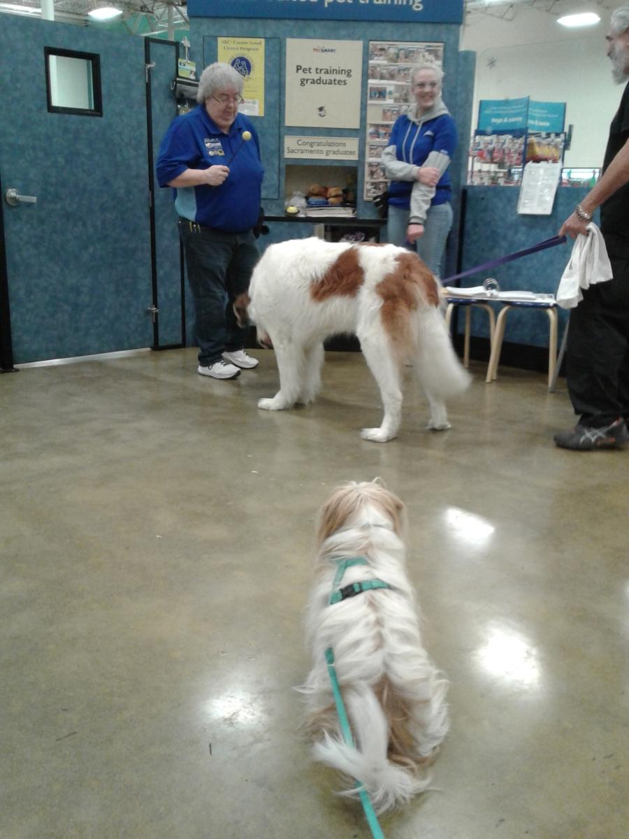Penny and Lucy help Jamie's training of PetsMarts' Walnut Creek/Pitsburg new dog trainer, Elizabeth Coleman...
